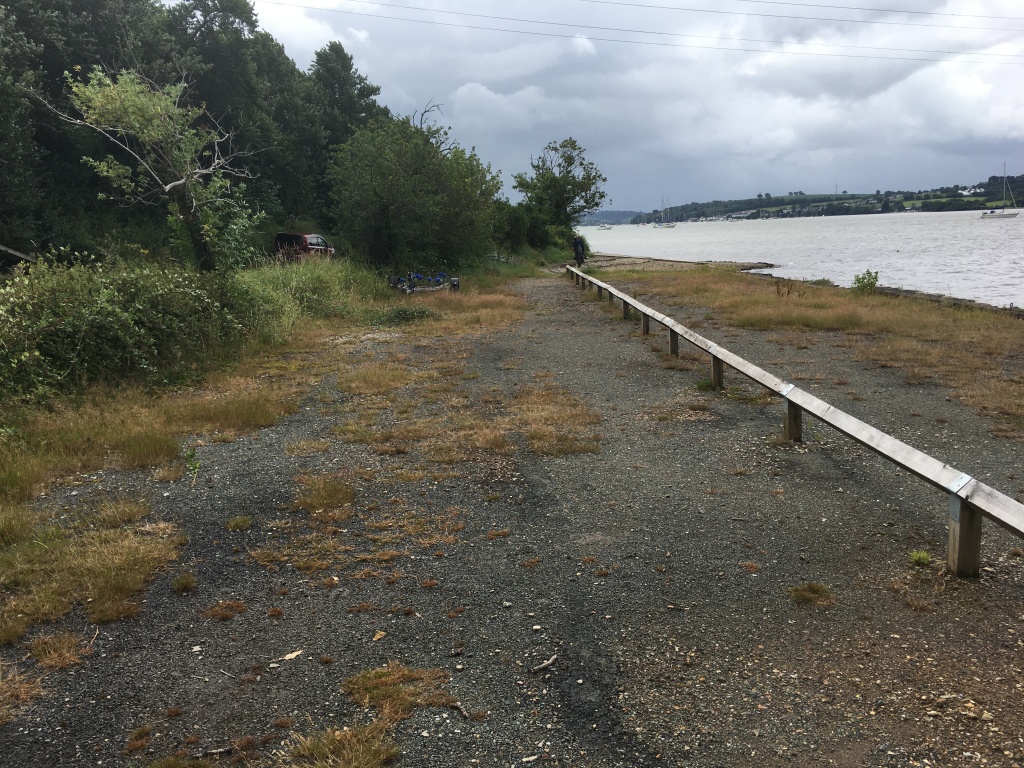 The road base park (probably placed on top of each other and chained together) will be in a concrete yard just adjacent to the camping field, and the boat park that we have permission to use is the strip of ex-Weir Quay boat park closest to the road. There is a low barrier that separates the strip that we can use from the bit that we can’t use.