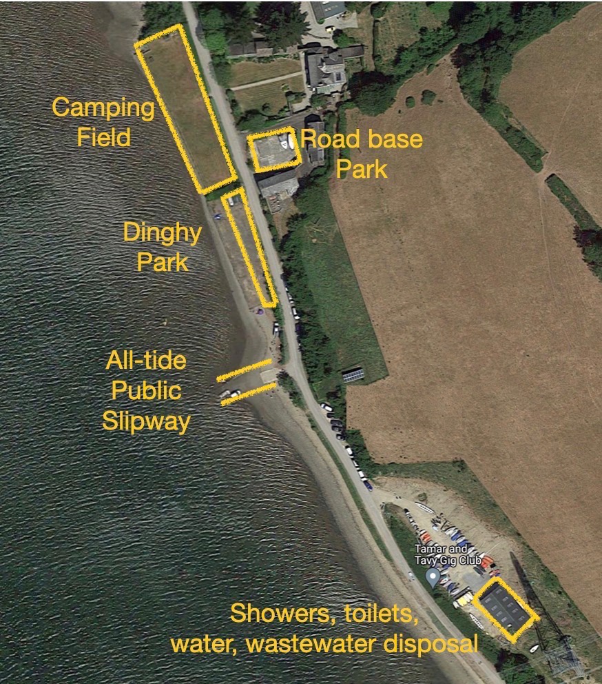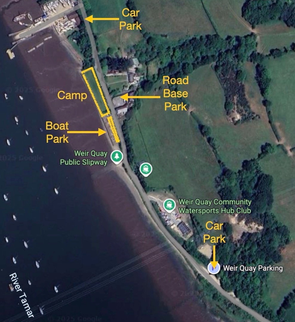 We have committed to taking no more than 8 dinghies to camp as that is the number that will fit on the ex-Weir Quay SC half-boatpark. If we want to take SUP and Kayaks and Paddleboards, as long as we can store them on the camping field that will be OK. This camp is only suitable for tents; no vehicles of any kind can be accommodated on the camping field.